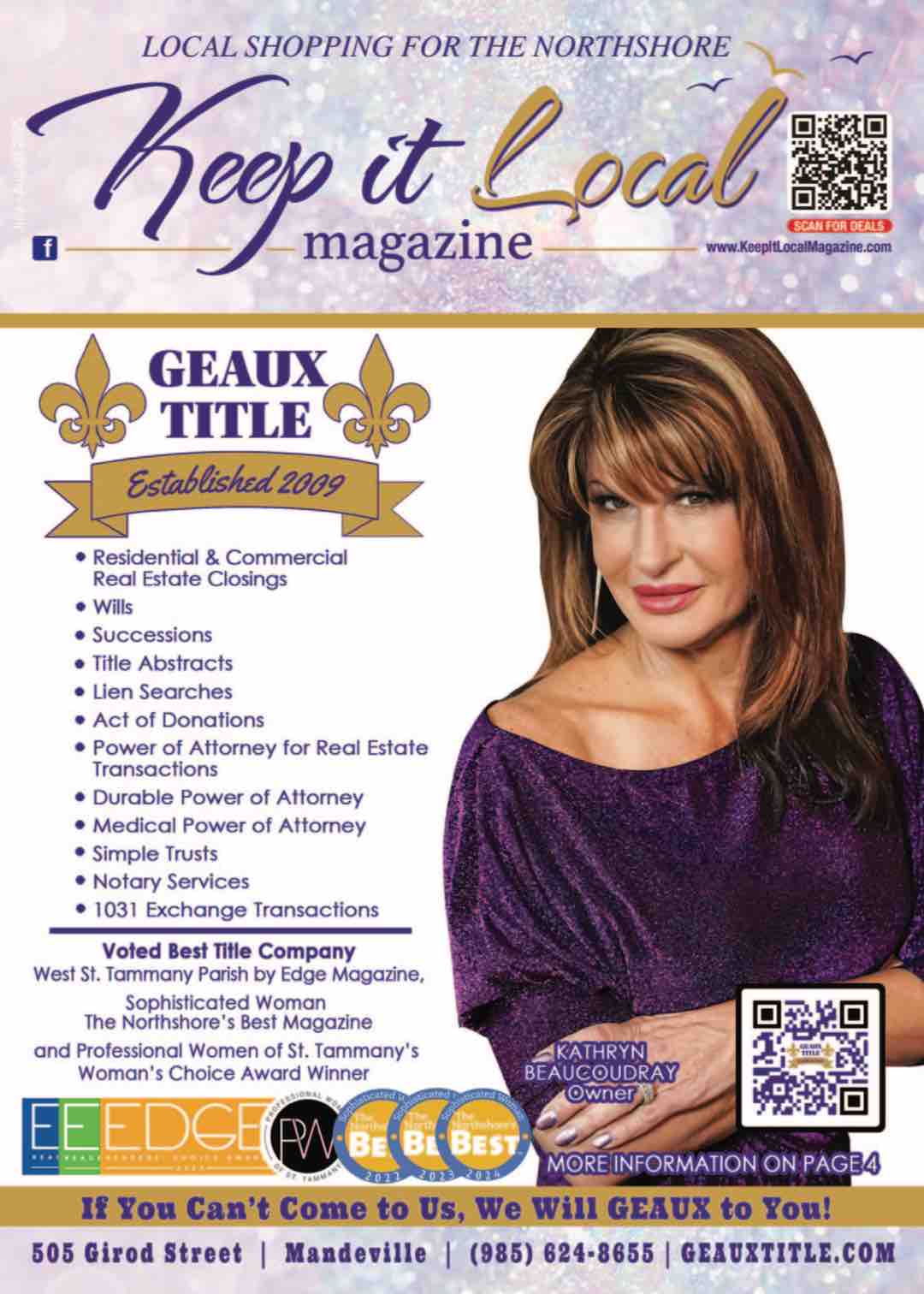 Northshore Shopping, the parent company of Keep It Local and Slidell Savings Magazines, oversees premier direct-mailed publications, each reaching up to 20,000 homes in Covington, Mandeville, Madisonville, Abita Springs, Slidell, and Pearl River six times annually. Published bimonthly, these magazines showcase local businesses with unique offerings, providing a vibrant platform to connect with the community. Promote your business and celebrate the spirit of “LOCAL”!